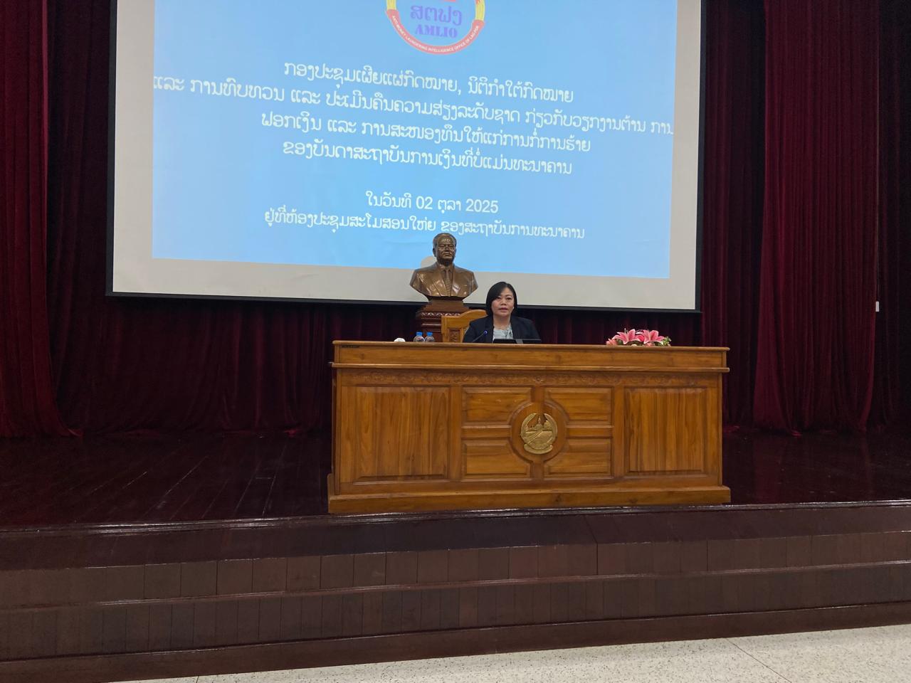 ສໍານັກງານຂໍ້ມູນຕ້ານການຟອກເງິນ ໄດ້ຈັດກອງປະຊຸມເຜີຍແຜ່ ກົດໝາຍ, ນິຕິກໍາໃຕ້ກົດ ໝາຍ ແລະ ການທົບທວນການປະເມີນຄືນຄວາມສ່ຽງລະດັບຊາດ ກ່ຽວກັບວຽກງານຕ້ານການຟອກເງິນ ແລະ ການສະໜອງທຶນໃຫ້ແກ່ການກໍ່ການຮ້າຍ ຂອງບັນດາສະຖາບັນການເງິນທີ່ບໍ່ແມ່ນທະນາຄານ ໂດຍຈັດຂຶ້ນໃນວັນທີ 02 ຕຸລາ 2025 ຢູ່ທີ່ຫ້ອງປະຊຸມສະໂມສອນ ຂອງສະຖາບັນທະນາຄານ ນະ ຄອນຫຼວງວຽງຈັນ. ໃຫ້ກຽດເປັນປະທານໂດຍ ທ່ານ ນາງ ນັນທະ ພົມມະວົງສາ ຮອງຫົວໜ້າສຳນັກງານຂໍ້ມູນຕ້ານການຟອກເງິນປະທານກອງປະຊຸມ ຊຶ່ງມີຜູ້ເຂົ້າຮ່ວມຂອງແຕ່ລະສະຖາບັນການເງິນທີ່ບໍ່ແມ່ນທະນາຄານ ຫຼາຍກວ່າ 200 ທ່ານ. ຈຸດປະສົງຂອງກອງປະຊຸມ ເພື່ອເຜີຍແຜ່ກົດໝາຍ ແລະ ນິຕິກໍາໃຕ້ກົດໝາຍ ກ່ຽວກັບການຕ້ານ ການຟອກເງິນ ແລະ ການສະໜອງທຶນໃຫ້ແກ່ການກໍ່ການຮ້າຍ ທີ່ໄດ້ປັບປຸງໃໝ່ ເປັນຕົ້ນ: ກົດໝາຍວ່າດ້ວຍການຕ້ານ ການຟອກເງິນ ແລະ ການສະໜອງທຶນໃຫ້ແກ່ການກໍ່ການຮ້າຍ (ສະບັບປັບປຸງ) ສະບັບເລກທີ 64/ສພຊ, ລົງວັນທີ 01 ກໍລະກົດ 2024 ແລະ ຂໍ້ຕົກລົງວ່າດ້ວຍ ມາດຕະການ ການເອົາໃຈໃສ່ລູກຄ້າ ສຳລັບຫົວໜ່ວຍທີ່ມີໜ້າທີ່ລາຍງານ ສະບັບເລກທີ 11 ລົງວັນທີ 29 ພຶດສະພາ 2025 (ສະບັບປັບປຸງ) ແລະ ເຜີຍແຜ່ແບບຟອມເກັບກຳຂໍ້ມູນ ເພື່ອປະເມີນຄວາມສ່ຽງລະດັບຊາດ ດ້ານການຟອກເງິນ ແລະ ການສະໜອງທຶນໃຫ້ແກ່ການກໍ່ການຮ້າຍ ແລະ ການເຂົ້າເຖິງການບໍລິການທາງດ້ານການເງິນ ຂອງບັນດາສະຖາບັນການເງິນທີ່ບໍ່ແມ່ນ. ທັງນີ້, ກໍ່ເພື່ອ ສ້າງຄວາມສາມາດ ແລະ ສ້າງຄວາມເຂົ້າໃຈ ຕໍ່ສິດ ແລະ ພັນທະ ຂອງຫົວໜ່ວຍທີ່ມີໜ້າທີ່ລາຍງານ ໃນຂັ້ນທ້ອງຖິ່ນ ໃຫ້ມີຄວາມເຂົ້າໃຈເລີກເຊິ່ງກ່ຽວກັບວຽກງານ ຕ້ານການຟອກເງິນ ແລະ ການສະໜອງທຶນໃຫ້ແກ່ການກໍ່ການຮ້າຍ ພ້ອມທັງເປັນການປະກອບຂໍ້ມູນໃສ່ແບບຟອມເກັບກຳຂໍ້ມູນ ປະເມີນຄວາມສ່ຽງລະດັບຊາດ ດ້ານການຟອກເງິນ ແລະ ການສະໜອງທຶນໃຫ້ແກ່ການກໍ່ການຮ້າຍໃຫ້ມີເນື້ອໃນຄົບຖ້ວນ ແລະ ສອດຄ່ອງຕາມຄວາມເປັນຈິງ, ເພື່ອແນໃສ່ແກ້ໄຂຂໍ້ຄົງຄ້າງດ້ານວຽກງານຕ້ານ ການຟອກເງິນ ແລະ ການສະໜອງທຶນໃຫ້ແກ່ການກໍ່ການຮ້າຍ ທີ່ຢູ່ໃນບັນຊີຕິດຕາມ (ບັນຊີສີເທົາ) ແລະ ຮັບປະກັນການຈັດຕັ້ງປະຕິບັດວຽກງານດັ່ງກ່າວ ໃຫ້ໄດ້ຮັບປະສິດທິຜົນຍິ່ງຂຶ້ນເທື່ອລະກ້າວ.