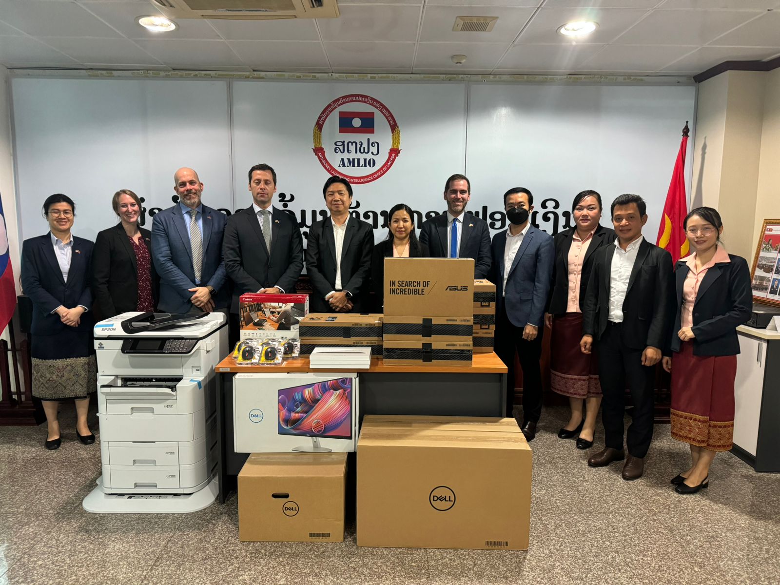 ພິທີມອບ-ຮັບ ເຄື່ອງອຸປະກອນເອເລັກໂຕຣນິກ ລະຫວ່າງ ສໍານັກງານຂໍ້ມູນຕ້ານການຟອກເງິນ (ສຕຟງ) ແລະ ພະແນກຕ້ານຢາເສບຕິດ ແລະ ປະຕິບັດກົດໝາຍ, ສະຖານທູດ ສ. ອາເມລິກາ ປະຈໍາ ສປປ ລາວ (Bureau of International Narcotics and Law Enforcement Affairs “INL”) ເພື່ອຮັບໃຊ້ເຂົ້າໃນວຽກງານຕ້ານ ສະກັດກັ້ນ ການຟອກເງິນ ແລະ ການສະໜອງທຶນໃຫ້ແກ່ການກໍ່ການຮ້າຍ (AML/CFT)