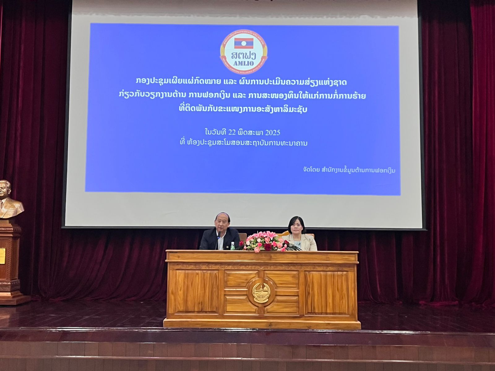 ກອງປະຊຸມເຜີຍແຜ່ ບົດລາຍງານຜົນການປະເມີນຄວາມສ່ຽງແຫ່ງຊາດຂະແໜງການອະສັງຫາລິມະຊັບ ກ່ຽວກັບວຽກງານຕ້ານ ການຟອກເງິນ ແລະ ການສະໜອງທຶນໃຫ້ແກ່ການກໍ່ການຮ້າຍ ທີ່ນະຄອນຫຼວງວຽງຈັນ ວັນທີ 22 ພຶດສະພາ 2025