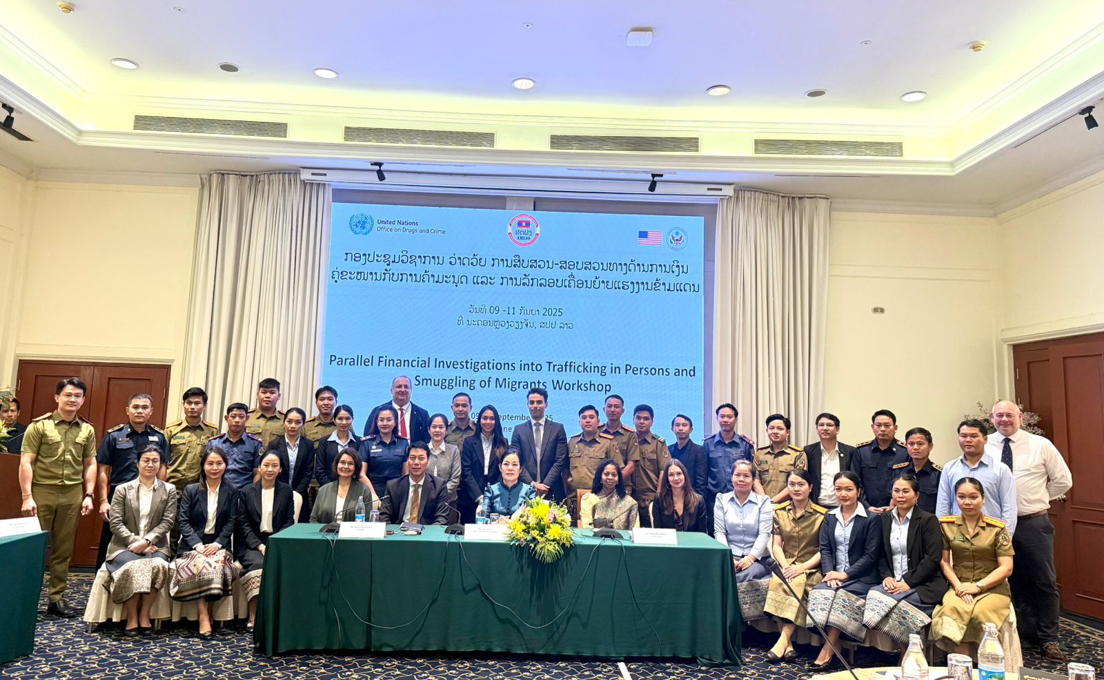 ໃນລະຫວ່າງວັນທີ 09-11 ກັນຍາ 2025 ທີ່ຜ່ານມາ ອົງການ UNODC ຮ່ວມກັບ ສໍານັກງານຂໍ້ມູນຕ້ານການຟອກເງິນ, ທະນາຄານແຫ່ງ ສປປ ລາວ ໄດ້ຈັດກອງປະຊຸມສໍາມະນາໃນຫົວຂໍ້: ກອງປະຊຸມວິຊາການ ວ່າດວ້ຍ ການສືບສວນ-ສອບສວນທາງດ້ານການເງິນຄູ່ຂະໜານ ກັບການຄ້າມະນຸດ ແລະ ການລັກລອບເຄື່ອນຍ້າຍແຮງງານຂ້າມແດນ. ກອງປະຊຸມແມ່ນຈະດໍາເນີນໄປເປັນເວລາ 03 ວັນ, ຢູ່ທີ່ໂຮງແຮມ ເສດຖາປຣາລາ. ໂດຍການເປັນປະທານຮ່ວມ ຂອງທ່ານ ນາງ ວິນຄໍາ ລຸນທອນ ວ່າການຫົວໜ້າສໍານັກງານຂໍ້ມູນຕ້ານການຟອກເງິນ, ທ່ານ ນາງ ມີແຊວ ເອົ້າລໍ, ທ່ານອຸປະທູດສະຫະລັດອາເມລີກາ ປະຈຳ ສປປ ລາວ ແລະ ທ່ານ ຊອງໂຮ ຮວ່າງ, ຫົວໜ້າຫ້ອງການ ອົງການສະຫະປະຊາຊາດ ເພື່ອຕ້ານຢາເສບຕິດ ແລະ ອາຊະຍາກຳ ປະຈຳ ສປປ ລາວ. ມີ ຕາງໜ້າເຂົ້າຮ່ວມການສຳມະນາຄັ້ງນີ້ລວມມີ: ອົງການໄປຍະການປະຊາຊົນສູງສຸດ, ສານປະຊາຊົນສູງສຸດ, ກະຊວງປ້ອງກັນຄວາມສະຫງົບ, ອົງການກວດສອບແຫ່ງລັດ, ກະຊວງການເງິນ, ກະຊວງການຕ່າງປະເທດ ແລະ ສໍານັກງານຂໍ້ມູນຕ້ານການຟອກເງິນ, ທະນາຄານແຫ່ງ ສປປ ລາວ. ຈຸດປະສົງຂອງກອງປະຊຸມໃນຄັ້ງນີ້ແມ່ນເພື່ອສ້າງຄວາມອາດສາມາດໃຫ້ກັບເຈົ້າໜ້າທີ່ສືບສວນ-ສອບສວນ ສະໜອງຄວາມຮູ້ ແລະ ທັກສະທີ່ຈຳເປັນ ເພື່ອໃຫ້ເຈົ້າໜ້າທີ່ສາມາດລະບຸ, ເກັບກຳ ແລະ ປະເມີນຂໍ້ມູນທາງດ້ານການເງິນໄດ້ຢ່າງມີປະສິດທິຜົນ ເພື່ອສະໜັບສະໜູນການສືບສວນການຄ້າມະນຸດ ແລະ ການສືບສວນທາງດ້ານການເງິນແບບຄູ່ຂະ ໜານກັນ’’. ກອງປະຊຸມ ໄດ້ມີການແລກປ່ຽນບົດຮຽນລະຫວ່າງເຈົ້າໜ້າທີ່ ແລະ ຄູຝຶກຢ່າງມີບັນຍາກາດຟົດຟື້ນ ແລະ ໄດ້ປິດລົງໃນວັນທີ 11 ກັນຍາ 2025 ໃນເວລາ 16:00 ໂມງ.